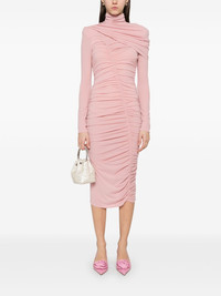 draped high-neck midi dress