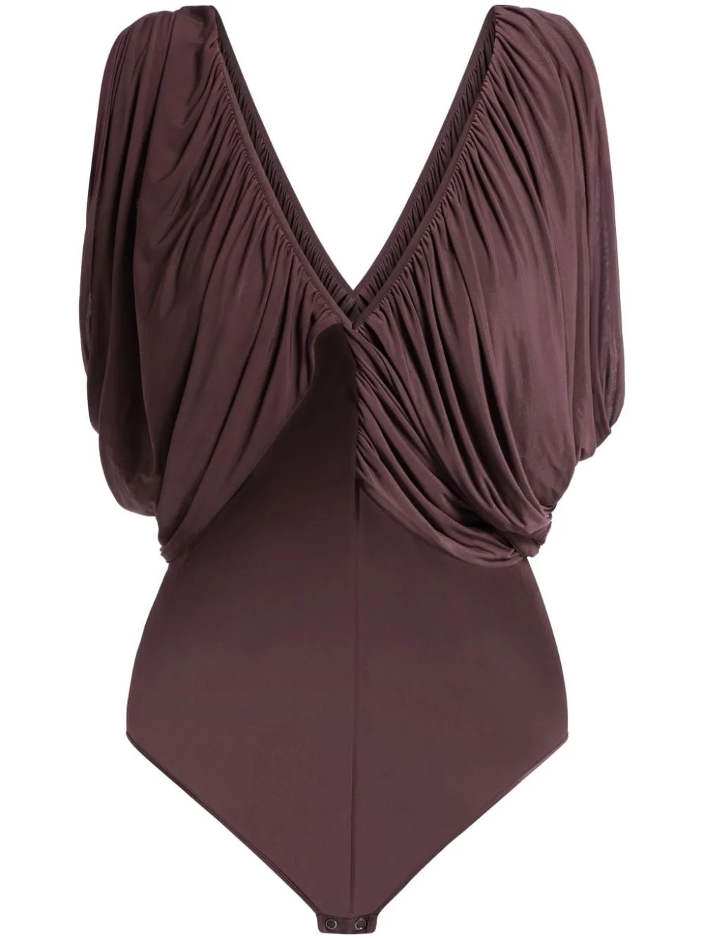 ruched bodysuit Highlights - Grape purple - Stretch-design - Press-stud fastening - V-neck - Ruched detailing - Sleeveless - Just a reminder that this piece must be tried on over your own garments. Imported Composition Cupro 92%, Spandex/Elastane 8%