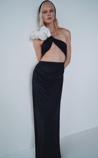 Unabashedly feminine and sexy in equal measure, the Polish designer’s party pieces sit in a league of their own—and continue to evolve in her new collection. Highlights include new bustier necklines and no shortage of the label's opulent drapery. This slinky maxi dress is crafted from breathable jersey and detailed with a silk ruffle strap, cutout bodice, and drapery along the back. PRODUCT DETAILS - Spring/Summer '24 - Zip fastening - Composition: Shell: 100% Silk; 78% Viscose, 17% Polyamide, 5% Elastane - Dry clean - Made in Poland SIZE & FIT - Designed for the slim fit