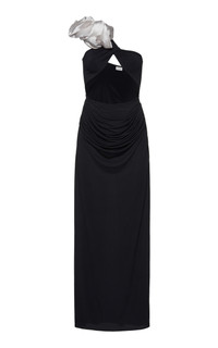 Ruffled Cutout Silk Maxi Dress black