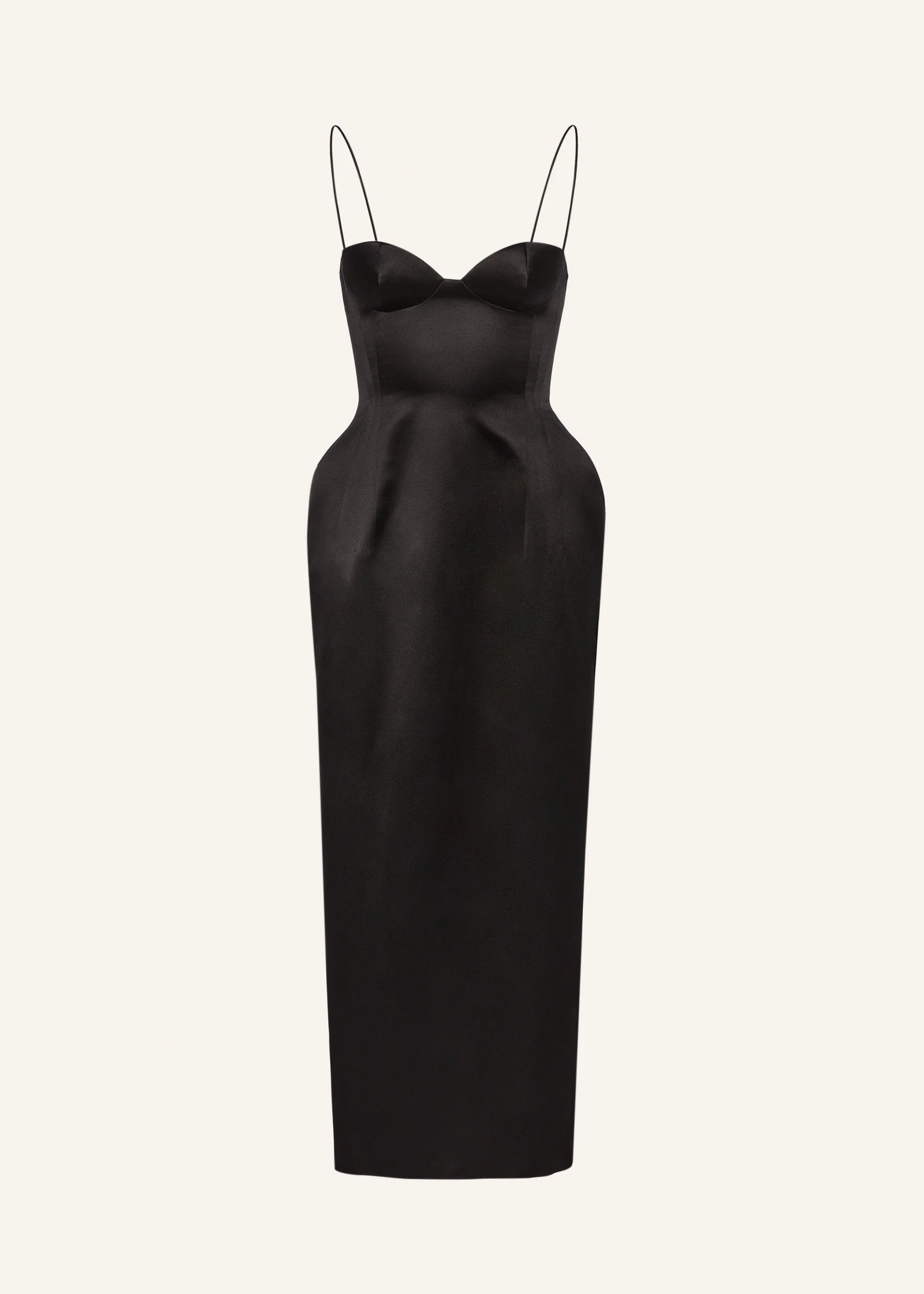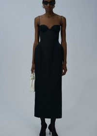 A silk midi dress with a feminine hourglass shape, created through a sweetheart bra with a fitted bodice and hip pads. Details ID: 245725 Shell 100% Silk. Lining 100% Silk. Sizing This piece fits true to size. We recommend you get your regular size. Model is 180 cm and is wearing a size 34.