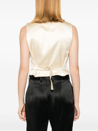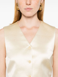 silk waistcoat Highlights - Light yellow - Silk - Satin finish - V-neck - Sleeveless - Two side jetted pockets - Adjustable strap to the rear - Full lining - Front button fastening Imported Composition Outer: Cotton 57%, Viscose 43% Lining: Silk 100% SIZE & FIT Model measurements Height 5 ft 10 in(1.77 m) Bust/Chest 33.85 in(86 cm) Hips 37 in(94 cm) Waist 26.37 in(67 cm) FittingInformation Designed for a slim fit that sits just away from the body offering a close yet comfortable fit The adjustable tabs allow for fitted preferences Made from a midweight non-stretch fabric This piece fits true to size – take your usual size
