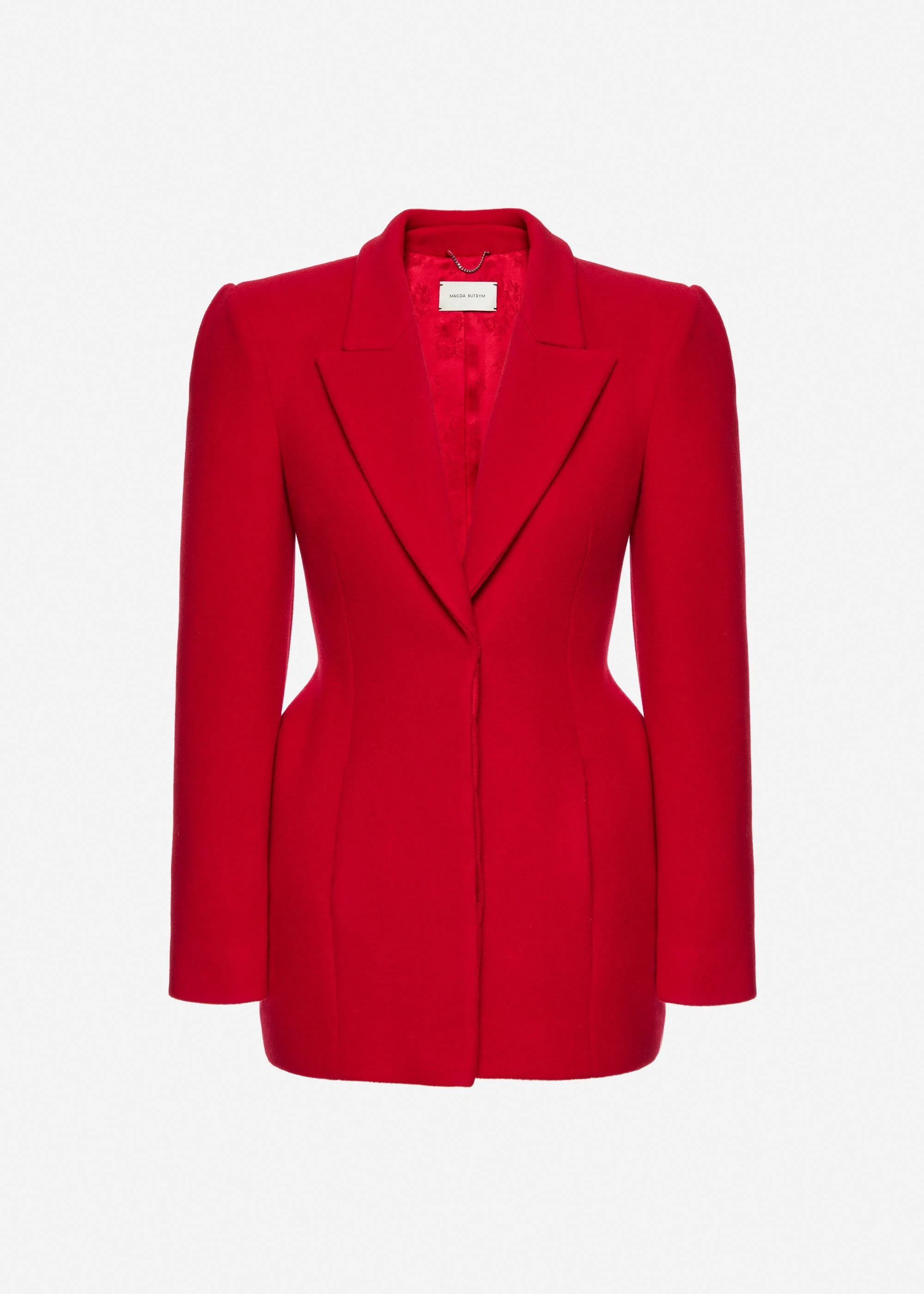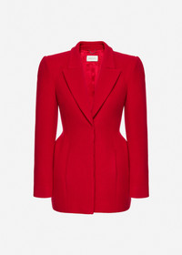 A meticulously tailored wool blazer designed with Magda Butrym's signature sculpted silhouette. The exaggerated hip pads create a distinct hourglass shape, giving structure and femininity to the fit. This piece blends menswear-inspired tailoring with couture-level craftsmanship. Wear it as a blazer or mini dress for a statement look. Details ID: 293426 Shell 100% Wool Lining 100% Silk. Sizing This piece has a slim fit. Model is wearing a size 34.