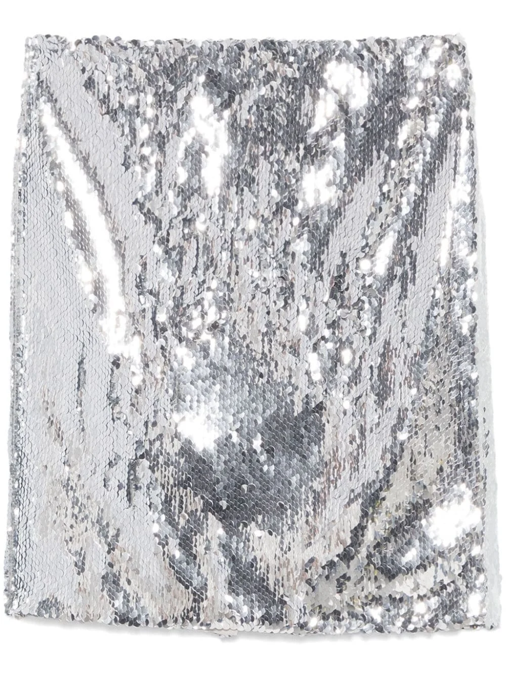 sequin midi skirt Highlights - Silver-tone - Stretch-design - Sequin embellishment - Rear zip fastening - Low-rise - Central rear vent - Full lining - Ankle-length Imported Composition Lining: Silk 90%, Lycra 10% Outer: Polyester 100% SIZE & FIT Model measurements Height 5 ft 10 in(1.78 m) Bust/Chest 33.85 in(86 cm) Hips 36.61 in(93 cm) Waist 26.77 in(68 cm) FittingInformation This midi-length skirt is intended to be worn just below the waist The vented hem offers movement at the rear Made from a midweight non-stretch fabric