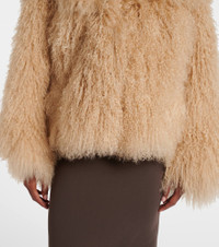 Magda Butrym aims to empower with sharp modern style, expertly delivered through artisanal excellence. This jacket is crafted from plush shearling, blending comfort with timeless sophistication. Product Details - Material: 100% shearling - Care instructions: dry clean - Made in Poland - Designer color name: Light Brown - Item color: beige - Lining: 100% viscose - Contains non-textile parts of animal origin - Item number: P01120842 Size & Fit - True to size - Oversized - Non-stretchy fabric - Falls to the hip - Height of model is 180cm-71" and wears a size FR 36