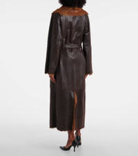 Magda Butrym aims to empower with sharp modern style, expertly delivered through artisanal excellence. This reversible wrap coat is made from dark brown leather with plush shearling lining. Product Details - Material: 100% sheep leather - Care instructions: specialist clean - Made in Poland - Designer color name: Brown - Item color: brown - Lining: 100% shearling - Detachable belt - Pockets: side slit pockets - Closure: wrap-front - Item number: P01086726 Size & Fit - True to size - Loose fit, comes with belt - Non-stretchy fabric - Height of model is 180cm-71" and wears a size FR 36