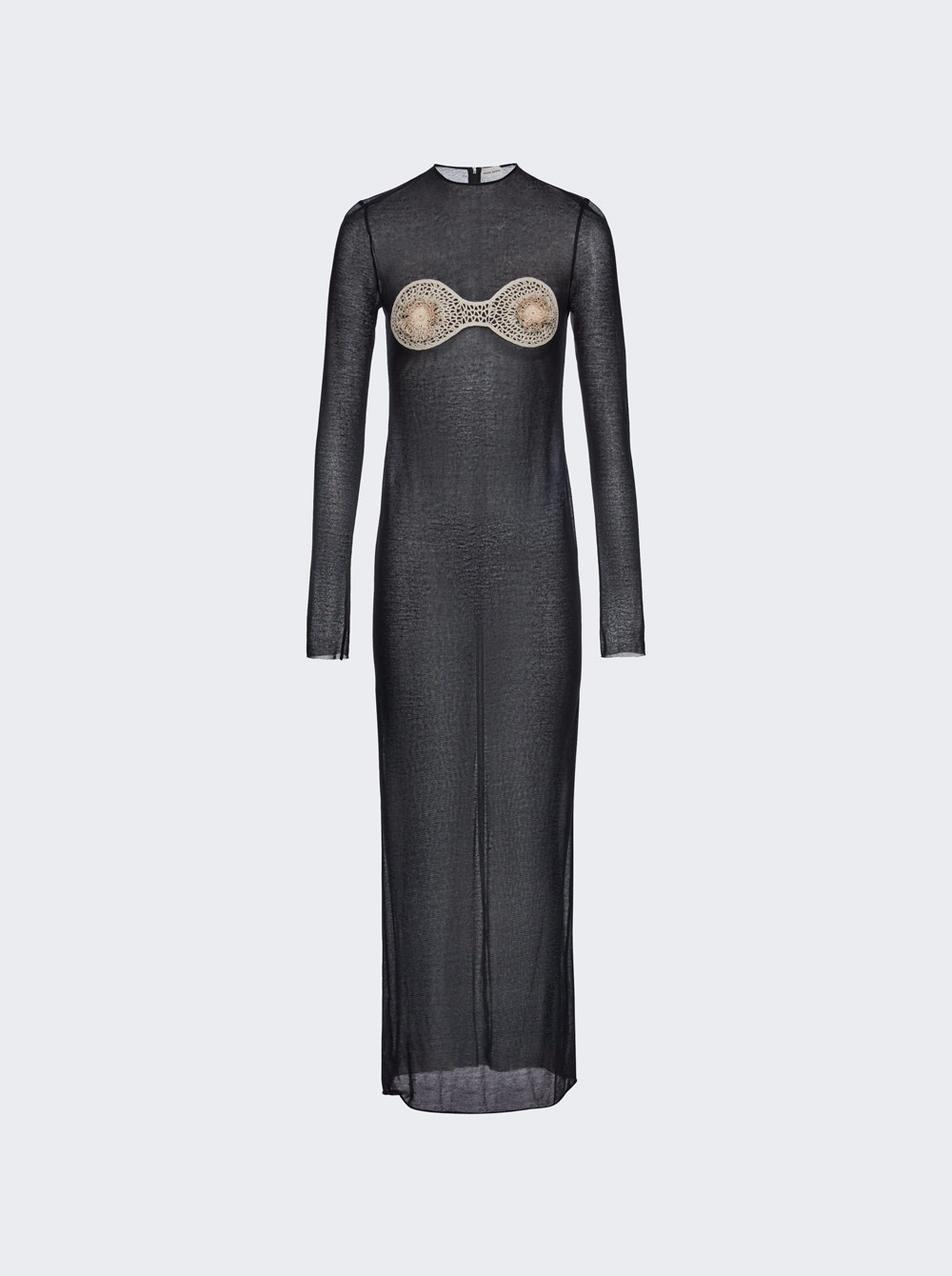 Details - Long-sleeved maxi - Round neckline - The crochet bra is featured on a sheer silhouette - Topstitching Dimensions: Model is 5'9"/175cm and is wearing a size FR36 Composition: Fabric blend Care: Care according to label Brand Style: 268424 Designer/Brand: MAGDA BUTRYM