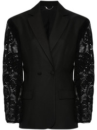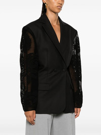 crochet-panel blazer Highlights - Black - Silk/cotton - Crochet panelling - Double-breasted button fastening - Semi-sheer panels - Notched lapels - Long sleeves - Two side flap pockets - Adjustable strap to the rear - Multiple internal slip pockets - Partial lining - Straight hem Imported Composition Outer: Silk 100%, Cotton 100% Lining: Silk 100% SIZE & FIT Model measurements Height 5 ft 10 in(1.77 m) Bust/Chest 31.88 in(81 cm) Hips 36.22 in(92 cm) Waist 24.01 in(61 cm) FittingInformation The internal shoulder pads offer a structured shape Made from a midweight non-stretch fabric