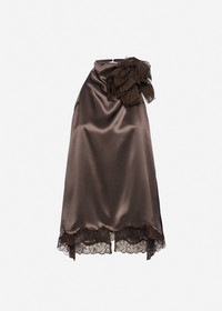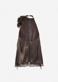 Silk open-back lace-trim blouse in brown