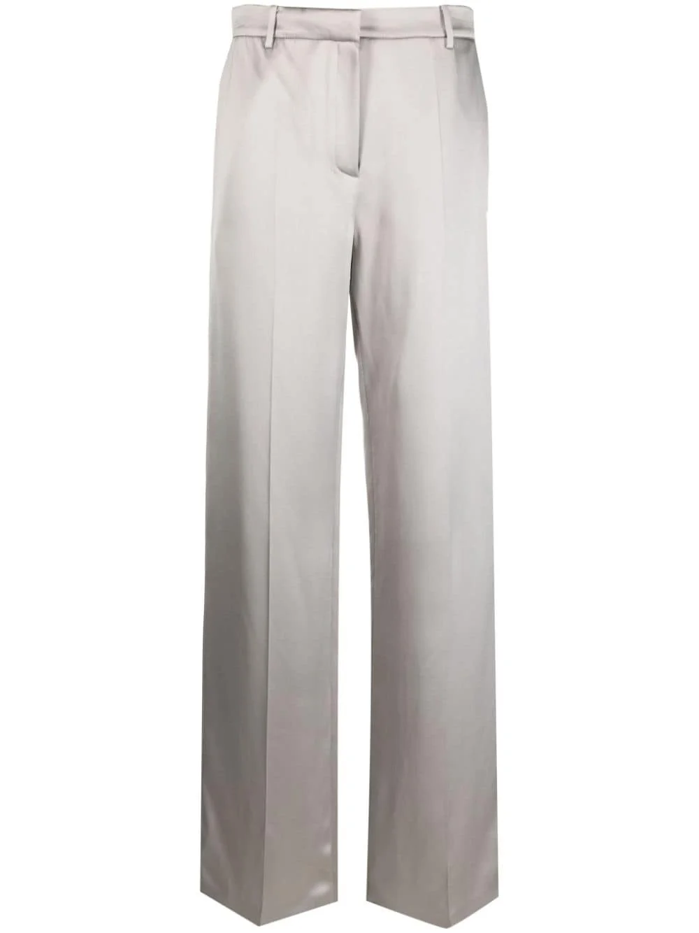 silk wide-leg trousers Introducing MAGDA BUTRYM's wide-leg trousers, a testament to the brand's commitment to refined design and high-quality craftsmanship. The high-waisted silhouette is accentuated by pleat detailing for a contemporary touch. Highlights - Ash grey - Silk - High waist - Concealed front fastening - Belt loops - Pleat detailing - Wide leg Imported Composition Outer: Virgin Wool 96%, Elastane 4% Lining: Silk 100% SIZE & FIT Model measurements Height 5 ft 11 in(1.8 m) Bust/Chest 31.49 in(80 cm) Hips 35.82 in(91 cm) Waist 24.8 in(63 cm) FittingInformation Designed for a straight-leg fit, these trousers allow for a close fit at the waist and an unrestricted, comfortable fit over the leg Made from a midweight stretch fabric, this piece offers elasticity and flexibility when worn This piece fits true to size – take your usual size Washing instructions Dry Clean Only