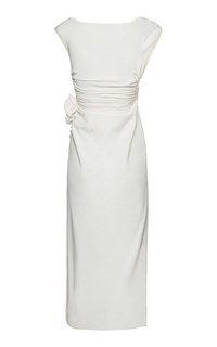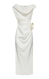 Unabashedly feminine and sexy in equal measure, the Polish designer’s party pieces sit in a league of their own—and continue to evolve season after season. Cut from fluid, lustrous silk, this midi dress features an elegantly draped neckline, wrapped waist, rosette detail, and column skirt. PRODUCT DETAILS - Pre-Fall '24 - Concealed zip fastening along side - Composition: 100% Silk - Dry clean only - Made in Poland SIZE & FIT - Designed for a slim fit