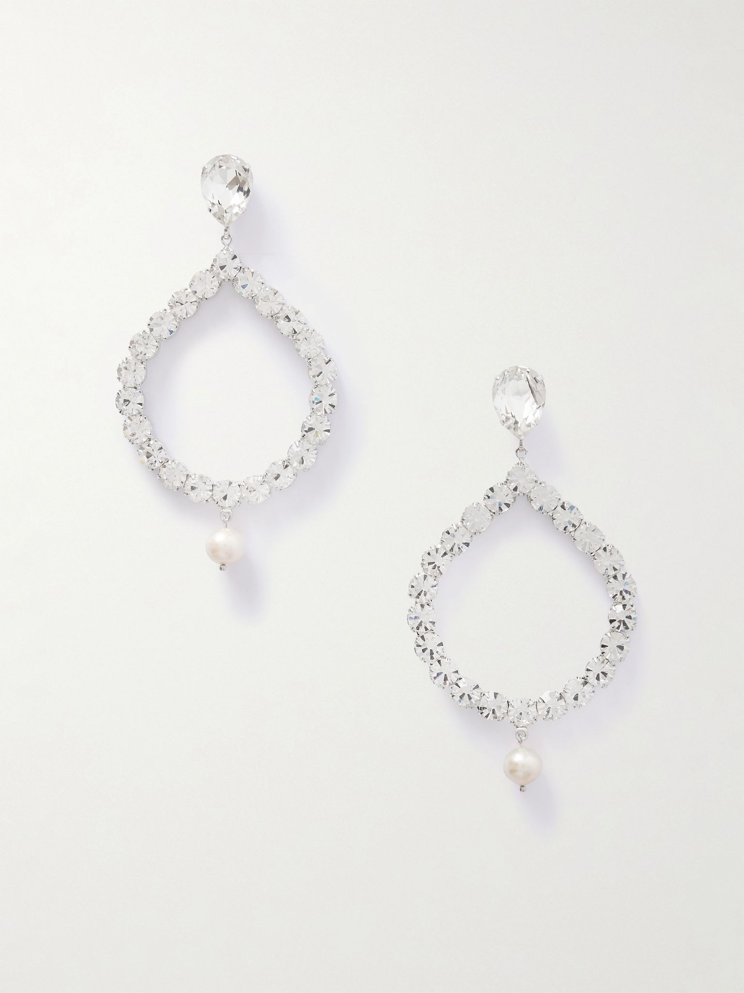 Magda Butrym's statement earrings are the perfect finishing touch for evening looks. They're made from silver-tone brass and have teardrop pendants set with glittering crystals. Dainty pearls sway gently at the base. Details & Care - Butterfly fastening for pierced ears - Freshwater pearl: China