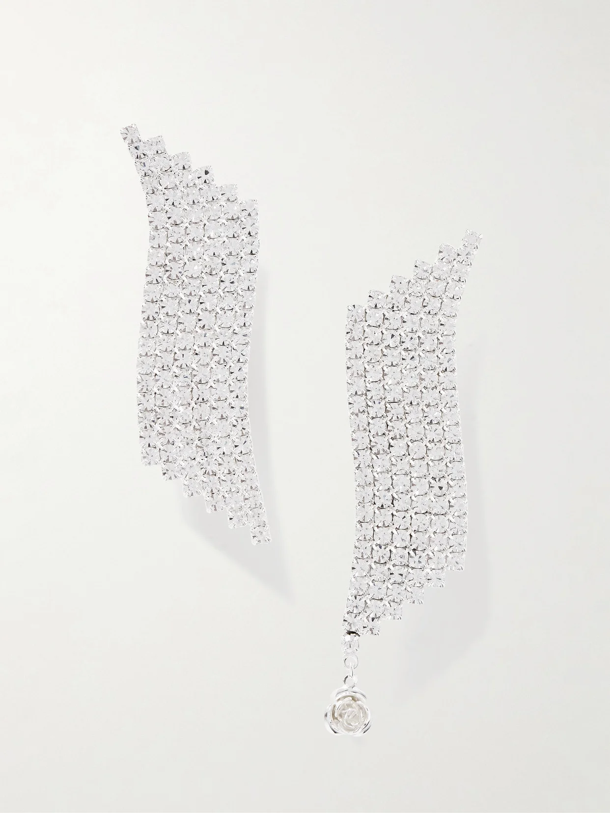 There's a rhythm to Magda Butrym's earrings, which are set with crystals in glistening, undulating rows. Made from silver-tone metal, this asymmetric pair is anchored by a single flower-shaped pendant that recalls the label's signature appliques.