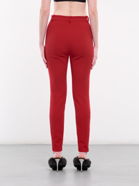 MAGDA BUTRYM pants in red, paneled stretch wool construction, high waist, belt loops, front concealed hook-eye & zip fly closure, cuff zip vents, tapered leg, skinny fit. Made in Poland 96% Wool 4% Elastane French Sizing Model is 5'11" wearing size 38. Bust: 31.5" Waist: 25" Hips: 36"