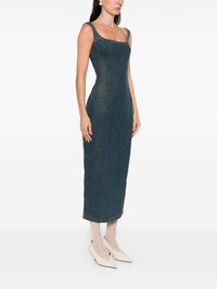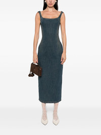 square-neck denim dress Highlights - Blue - Denim - Sleeveless - Square neckline - Fitted bodice - Concealed zip fastening Imported Composition Cotton 100% SIZE & FIT Model measurements Height 5 ft 10 in(1.78 m) Bust/Chest 33.46 in(85 cm) Hips 36.22 in(92 cm) Waist 23.22 in(59 cm) Washing instructions Machine Wash