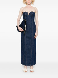 strapless denim midi dress Highlights - Navy blue - Corsetry boning - Strapless neckline - Seamed detailing Imported Composition Fabric 100% SIZE & FIT Model measurements Height 5 ft 9 in(1.75 m) Bust/Chest 34.64 in(88 cm) Hips 36.61 in(93 cm) Waist 26.37 in(67 cm) Washing instructions Read Manufacturer Guidelines
