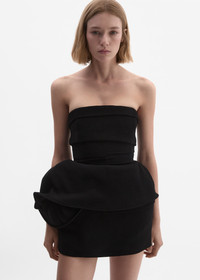 A short, structured dress crafted with an internal corset. Defined at the waist with a wide asymmetric peplum that wraps from the back to the front, ending in a voluminous floral twist on the side. The hips are subtly accentuated with padding for shape. Fastens at the back with a concealed zipper; internal corset closes with hook-and-eye tape. Details ID: 160426 Shell 90% Viscose 10% Polyamide Lining 100% Silk Sizing This piece has a slim fit. Model is wearing a size 34.