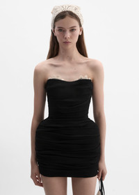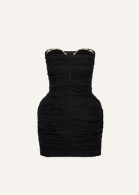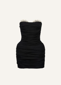Strapless ruched silk mini dress in black