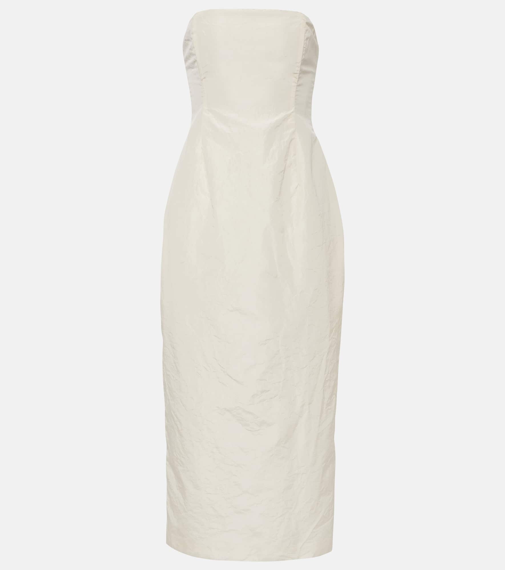 Strapless silk taffeta midi dress