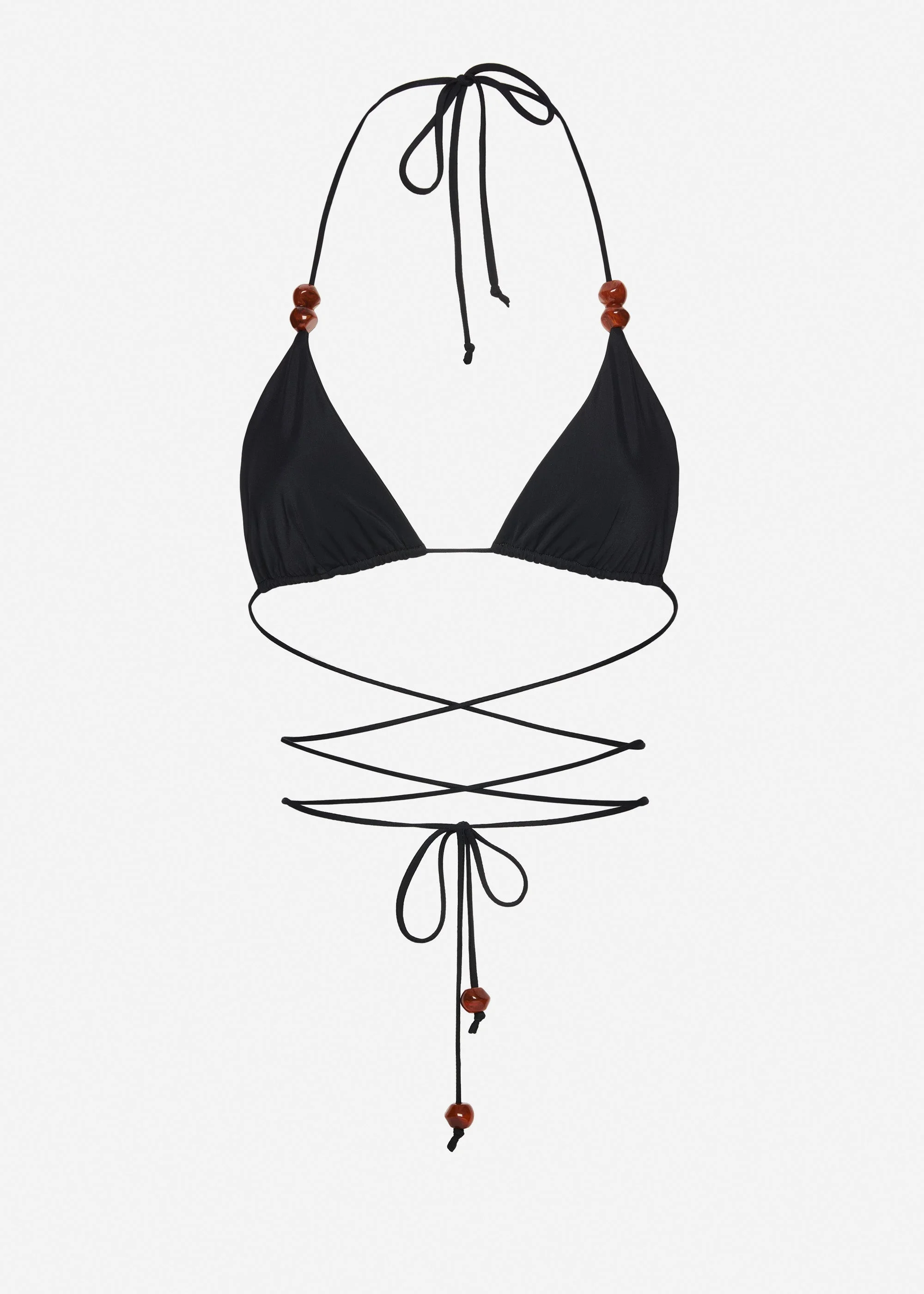 A classic triangle top with extra long straps to create a criss cross at the waist, with non-padded adjustable triangle cups at the bust. Adorned with beads. Details ID: 629426 Shell 75% Polyamide 25% Elastane Sizing This piece has a regular fit. Model is wearing a size 34.