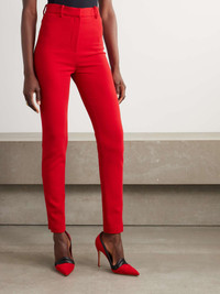 EDITORS'NOTES Magda Butrym's pants are made from stretch-wool in a vibrant red shade to match the coordinating blazer in our edit - they certainly make an impact when styled together or separately. Designed to closely hug your figure, they have a high rise and concealed zips at the cuffs that can be adjusted to alter the shape. SIZE & FIT Model measurements: - Fits large to size, take one size smaller than normal - High-rise, intended for a skinny fit - Mid-weight, stretchy fabric - Model is 177cm/ 5'10", normally wears a FR 36 and is wearing a FR 34 - Bust: 79cm/ 31" - Waist: 61cm/ 24" - Hip: 89cm/ 35" DETAILS & CARE - Red stretch-wool - Concealed hook, button and zip fastening at front - 96% wool, 4% elastane - Dry clean Large to size. See Size & Fit notes.