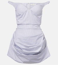 Striped draped cotton poplin bustier dress