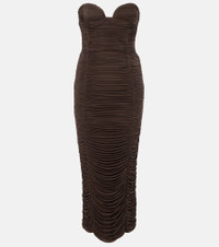 Magda Butrym aims to empower with sharp modern style, expertly delivered through artisanal excellence. As suggested by the name, the Sweetheart bustier dress is defined by a body-framing silhouette with a bustier bodice and a romantic sweetheart neckline. Product Details - Material: 92% cupro, 8% elastane - Care instructions: dry clean - Made in Poland - Color: brown - Designer color name: Brown - Item color: brown - Underwired cups - Hook-fastening built-in bustier - Boning - Closure: concealed zipped back - Item number: P01120830 Size & Fit - True to size - Ideal fit for larger bust sizes - Strapless - Internal corset with underwire support - Fitted - Stretchy fabric - Height of model is 175cm-69" and wears a size FR 36