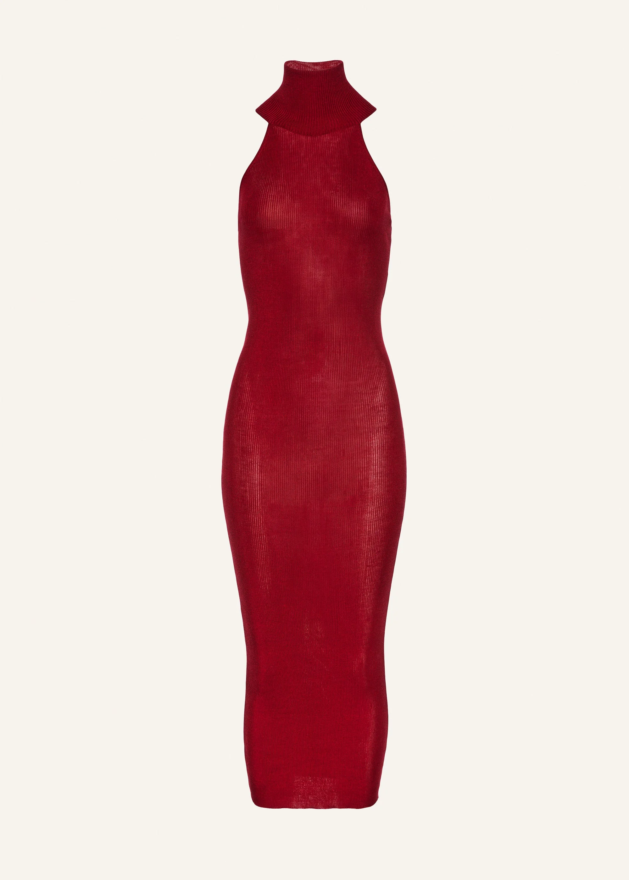 A simple silk knit midi dress with a form-fitting shape and a high turtleneck. Details ID: 300725 Shell 100% Silk Sizing This piece fits true to size. We recommend you get your regular size. Model is 180 cm and is wearing a size 34.