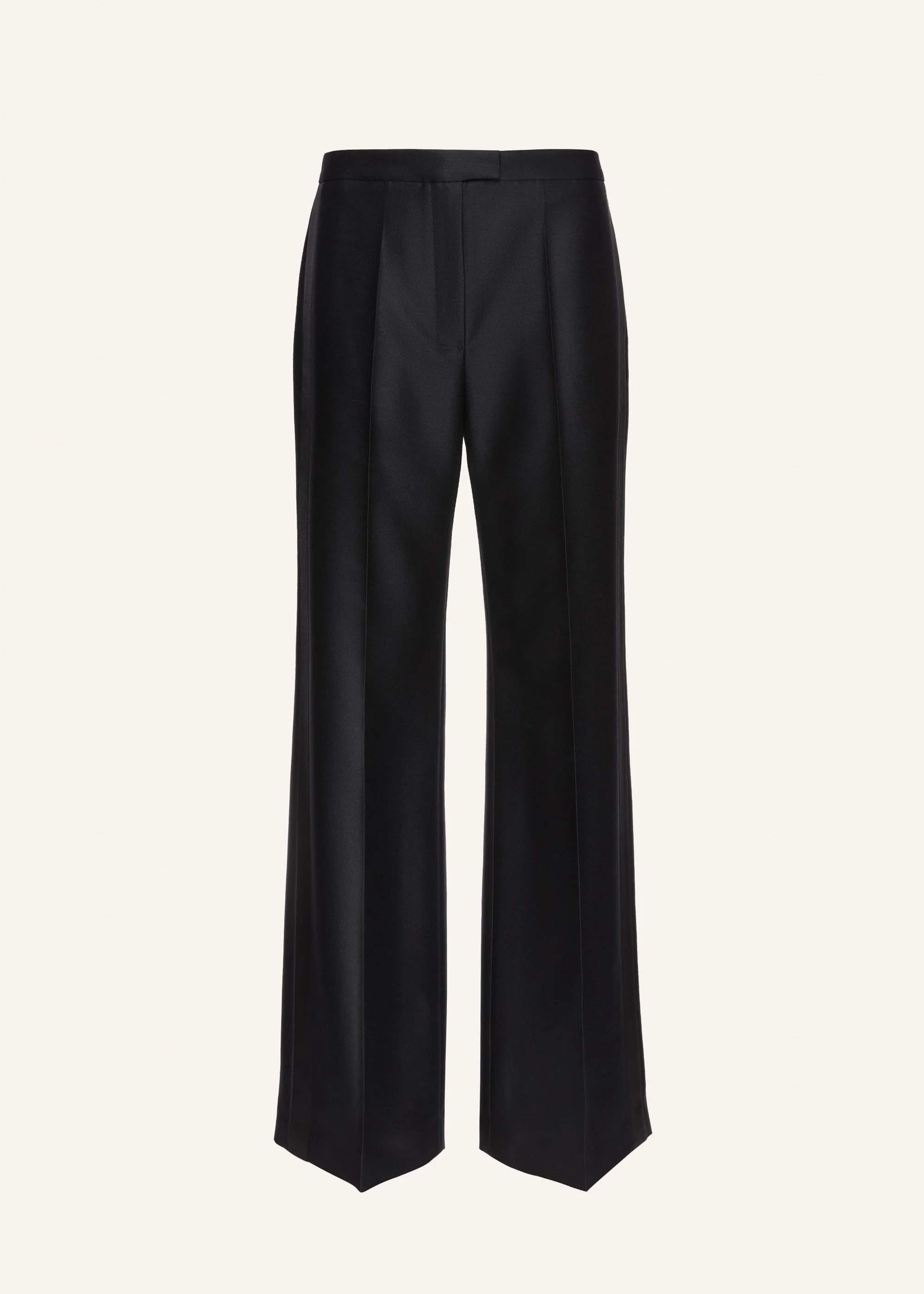 Tailored from wool and silk blend, these straight-leg trousers feature crisp front and back creases, enhanced by tonal side tuxedo stripes. The clean silhouette is complemented by discreet side seam pockets and back welt pockets with button closures. Details ID: 183925 Shell [1] 93% Wool 7% Silk [2] 74% Silk 26% Wool Lining 100% Silk. Sizing This piece fits true to size. We recommend you get your regular size. Model is 177 cm and is wearing a size 34.
