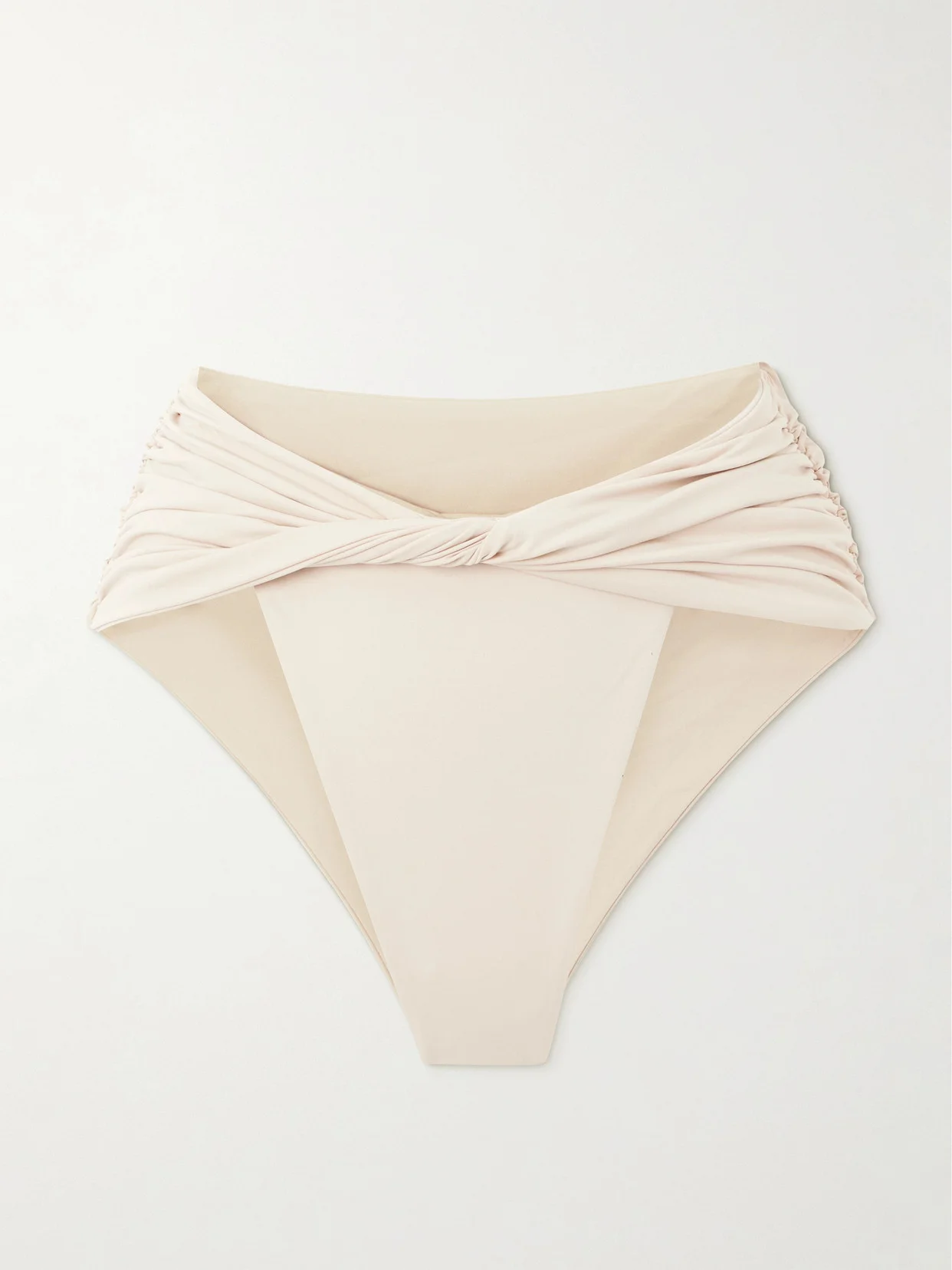 Magda Butrym's bikini briefs have a twisted waistband that matches the silhouette of the coordinating bandeau top. They're made from smooth stretch fabric and have high-cut legs.