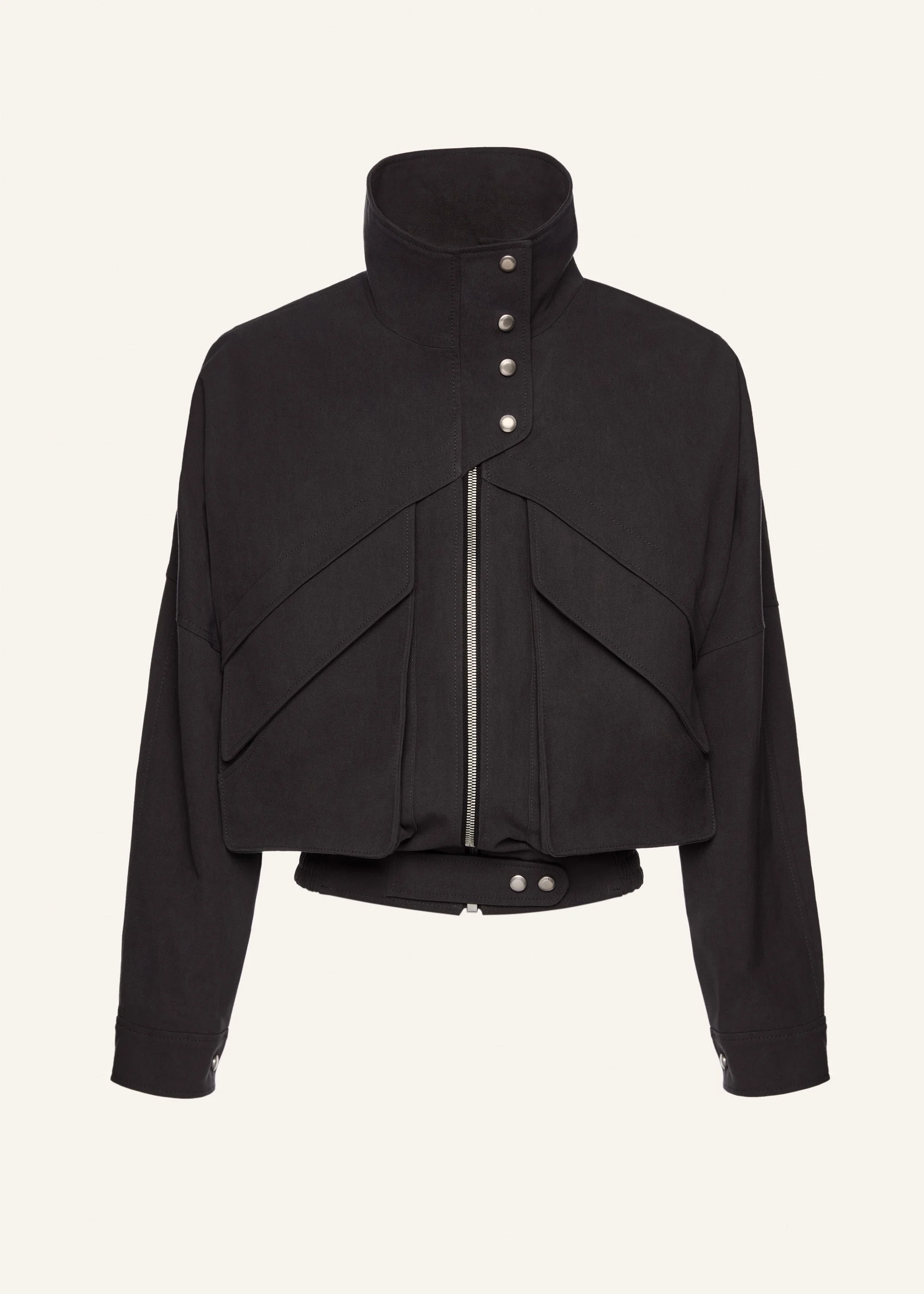The Magda Butrym signature oversized bomber shape made from lightweight silk fabric for a casual and cool look. Features an elastic waistband and flaps at chest. Details ID: 224725 Shell 100% Cotton. Lining 100% Silk. Sizing This piece fits true to size. We recommend you get your regular size. Model is 180 cm and is wearing a size 34.