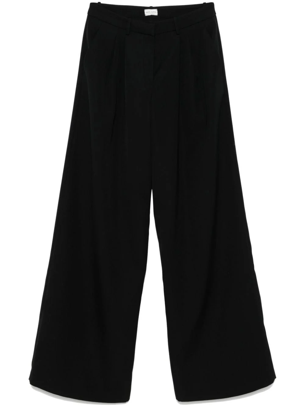 wide-leg wool trousers Highlights - Silk lining - Black - Wool - Twill weave - Wide leg - Concealed front button, hook and zip fastening - Belt loops - Pleat detailing - Two side slash pockets - Two rear jetted pockets Imported Composition Lining: Silk 100% Outer: Wool 100% SIZE & FIT Model measurements Height 5 ft 10 in(1.78 m) Bust/Chest 33.07 in(84 cm) Hips 36.61 in(93 cm) Waist 24.8 in(63 cm) FittingInformation Designed with a wide-leg cut, these trousers allow for a close fit at the waist and offer a loose and roomy fit over the leg Made from a midweight non-stretch fabric