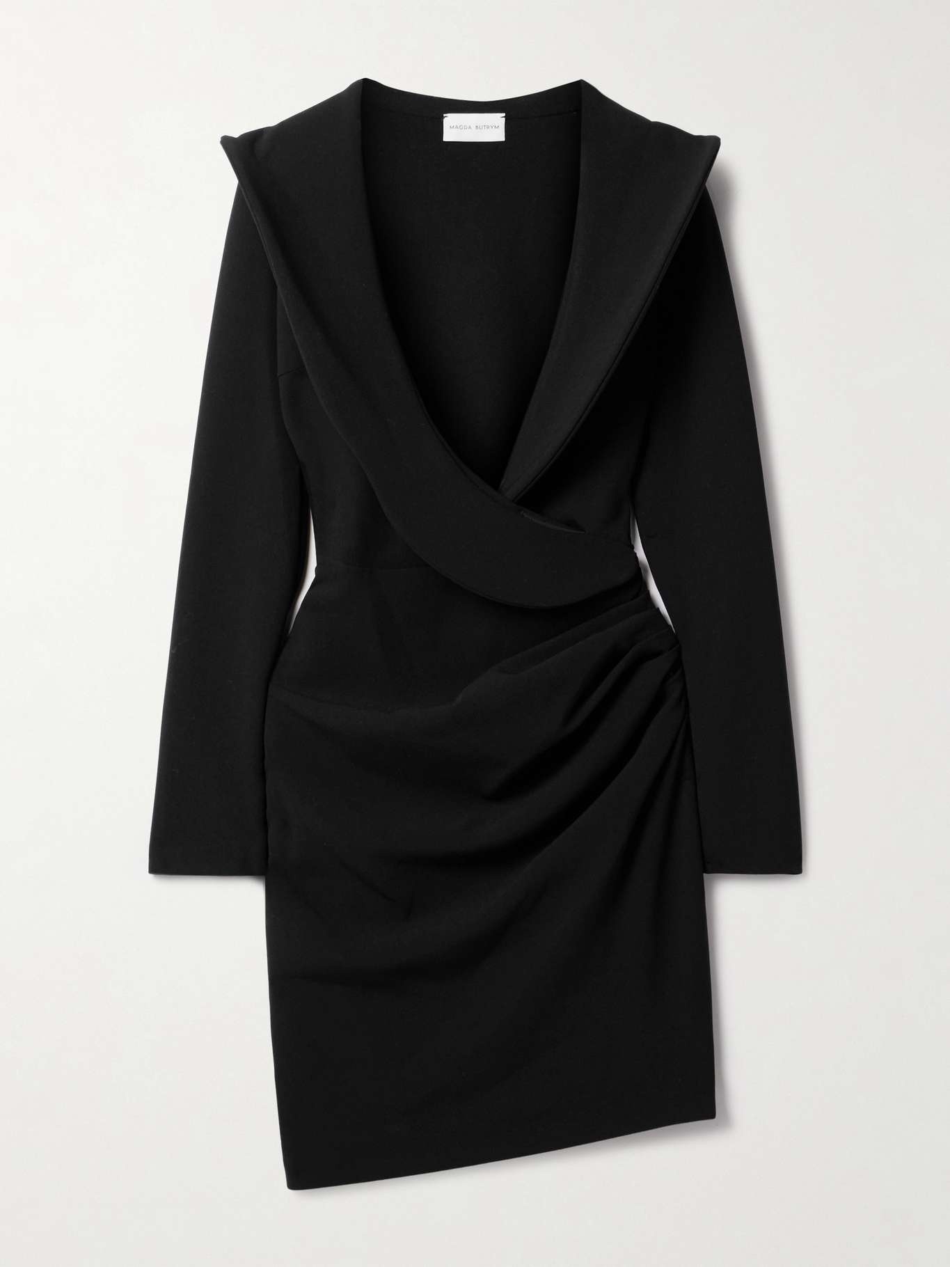 EDITORS'NOTES Magda Butrym's mini dress has voluminous, lightly structured lapels that wrap around your chest and waist. It's made from smooth wool-blend crepe and closely skims your curves. Accessorize with tonal tights and pumps. SIZE & FIT Model measurements: - Fits true to size, take your normal size - Designed for a close fit - Mid-weight, stretchy fabric - Model is 175cm/ 5'9" and is wearing a FR 36 - Bust: 79cm/ 31" - Waist: 61cm/ 24" - Hip: 89cm/ 35" DETAILS & CARE - Black wool-blend crepe - Concealed zip fastening along side - 96% wool, 4% elastane; lining: 96% silk, 4% elastane - Dry clean