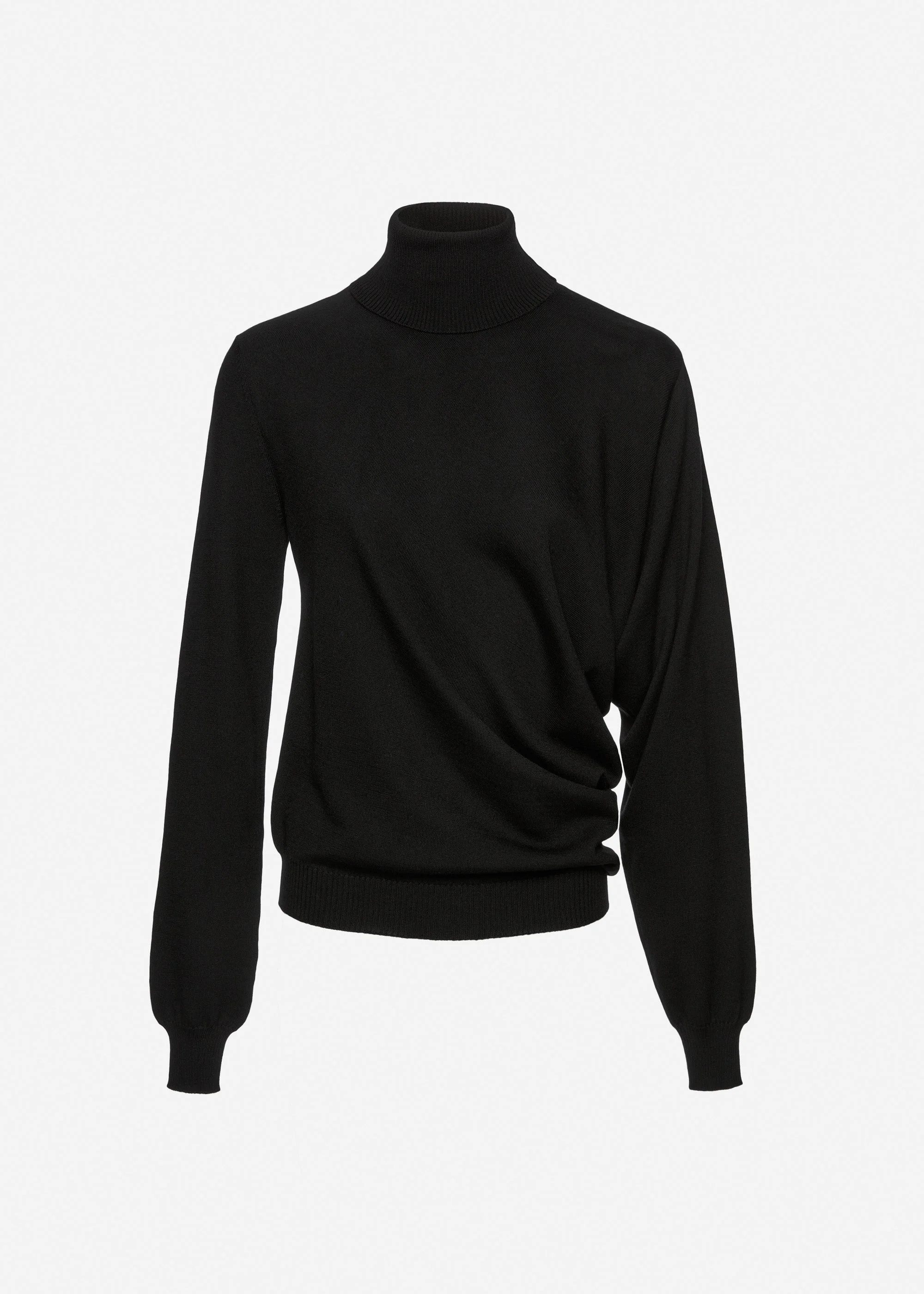 Wool draped turtleneck in black