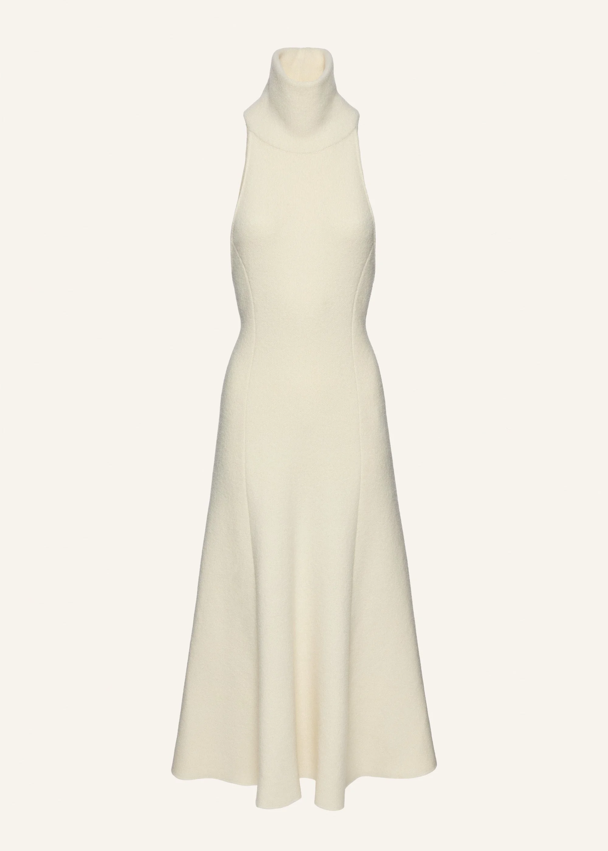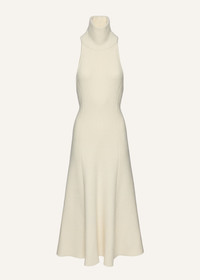 A refined sleeveless midi dress crafted from a luxurious blend of wool, silk, and cashmere. Designed with a softly flared skirt, it features a high neckline and a dramatic open back that adds an element of unexpected allure. The seamless silhouette flatters the figure. Details ID: 324925 Shell 50% Wool 30% Silk 20% Cashmere. Sizing This piece fits true to size. We recommend you get your regular size. Model is 177 cm and is wearing a size 34.