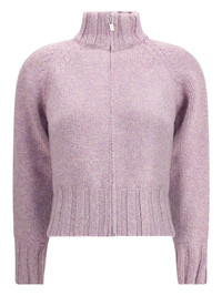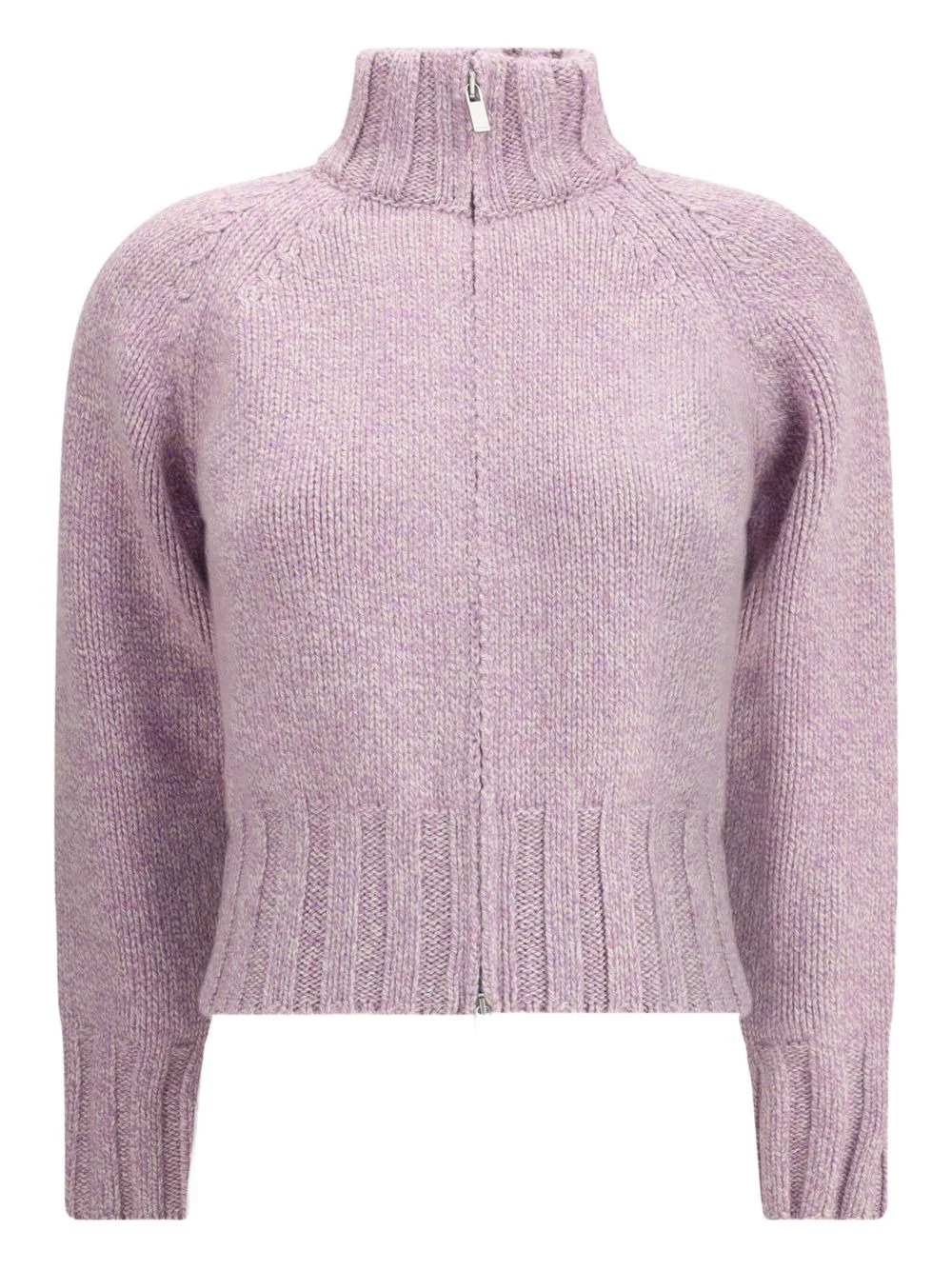 high-neck zip-front cardigan Highlights - Lilac - High neck - Zip front - Raglan sleeves - Ribbed hem and cuffs Made in Italy Composition Cashmere 100% Washing instructions Read Manufacturer Guidelines