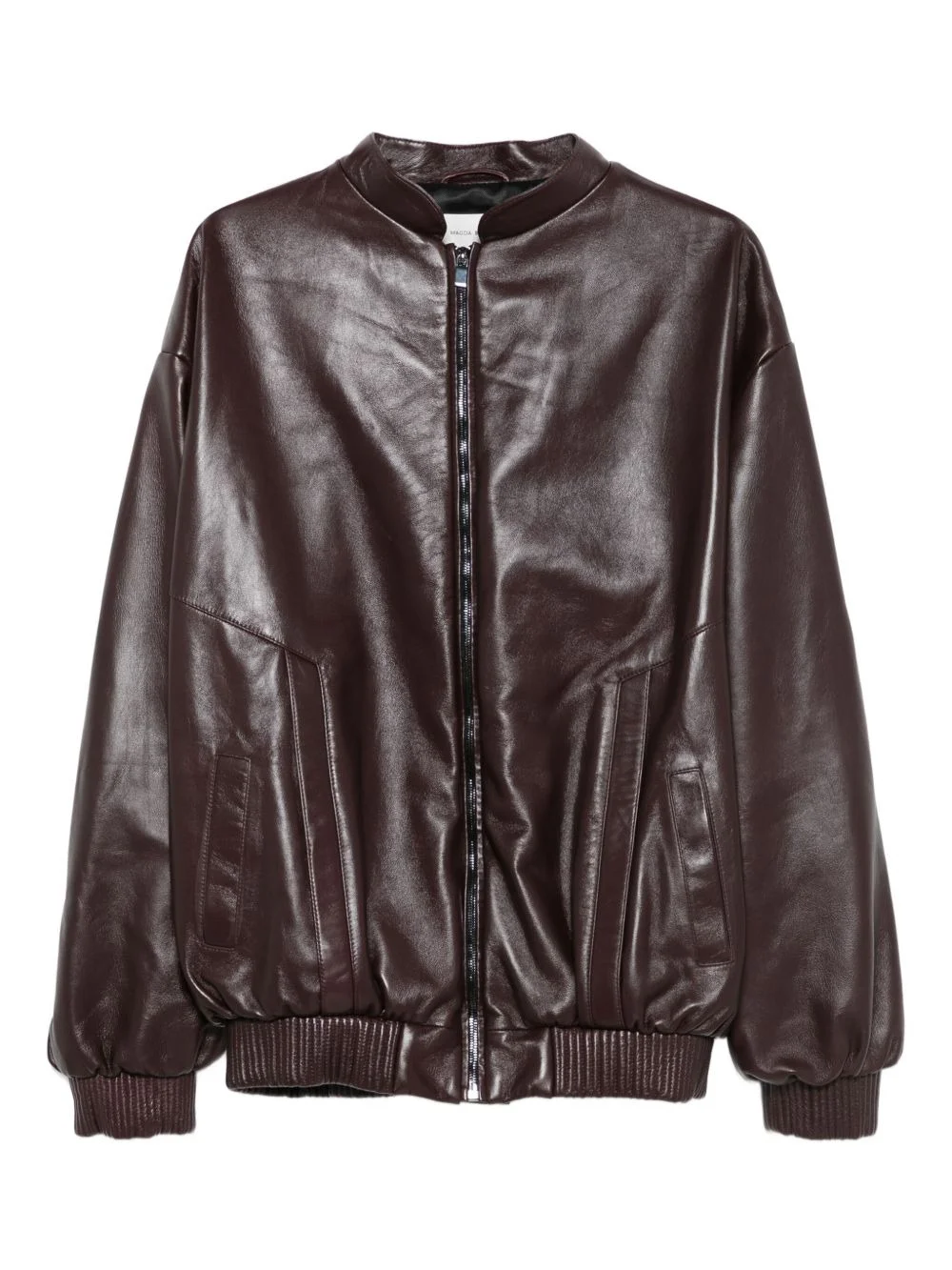 zip-fastening ribbed-cuff jacket Highlights - Burgundy - Leather - Zip fastening - Ribbed cuffs - Welt pockets Imported Composition Lining: Viscose 100% Outer: Sheepskin 100% SIZE & FIT Model measurements Height 5 ft 9 in(1.75 m) Bust/Chest 32.67 in(83 cm) Hips 36.22 in(92 cm) Waist 24.8 in(63 cm) Washing instructions Specialist Cleaning