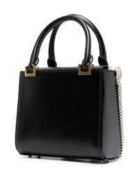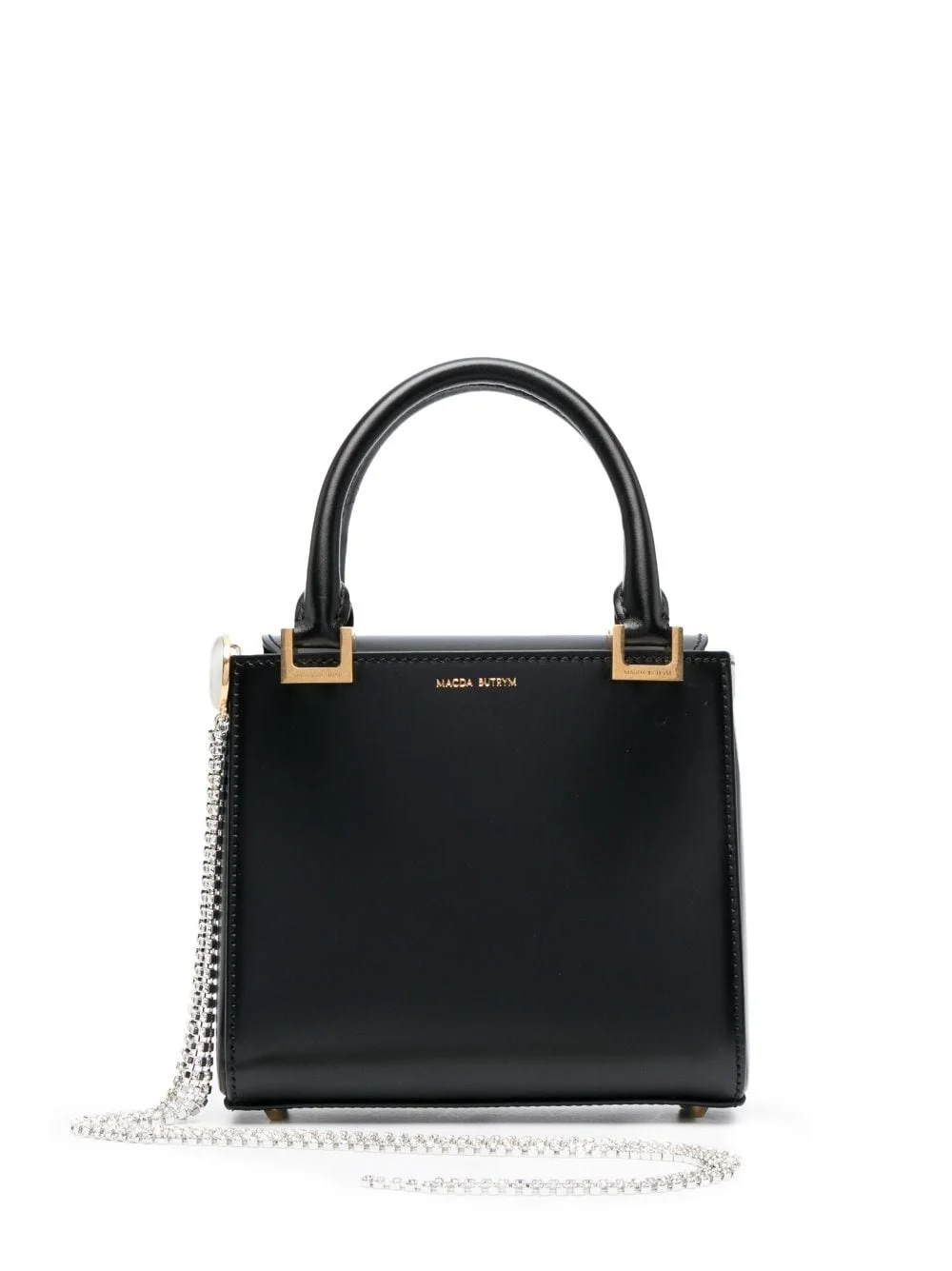 Zorya crystal-embellished mini bag Crafted from smooth leather in a timeless black hue, the Zorya bag from Magda Butrym is constructed in a structured design. The accessory is complete with the brand's signature crystal brooch for an elegant touch. Highlights - Black - Calf leather - Crystal embellishment - Gold-tone hardware - Two top handles - Embossed logo to the front - Main compartment Made in Italy Composition Outer: Calf Leather 100% SIZE & FIT Model measurements Height 5 ft 10 in(1.77 m) Bust/Chest 32.28 in(82 cm) Hips 35.03 in(89 cm) Waist 25.19 in(64 cm)
