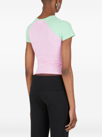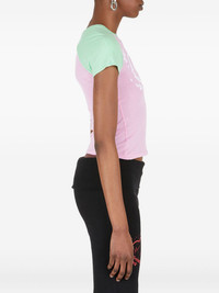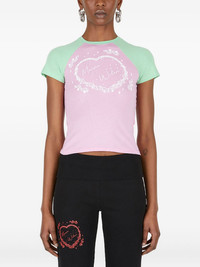 heart-print raglan-sleeve top Highlights - Pink - Raglan sleeves - Heart-shaped print - Short sleeves - Ribbed fabric Imported Composition Polyester 83%, Elastane 17% Washing instructions Read Manufacturer Guidelines