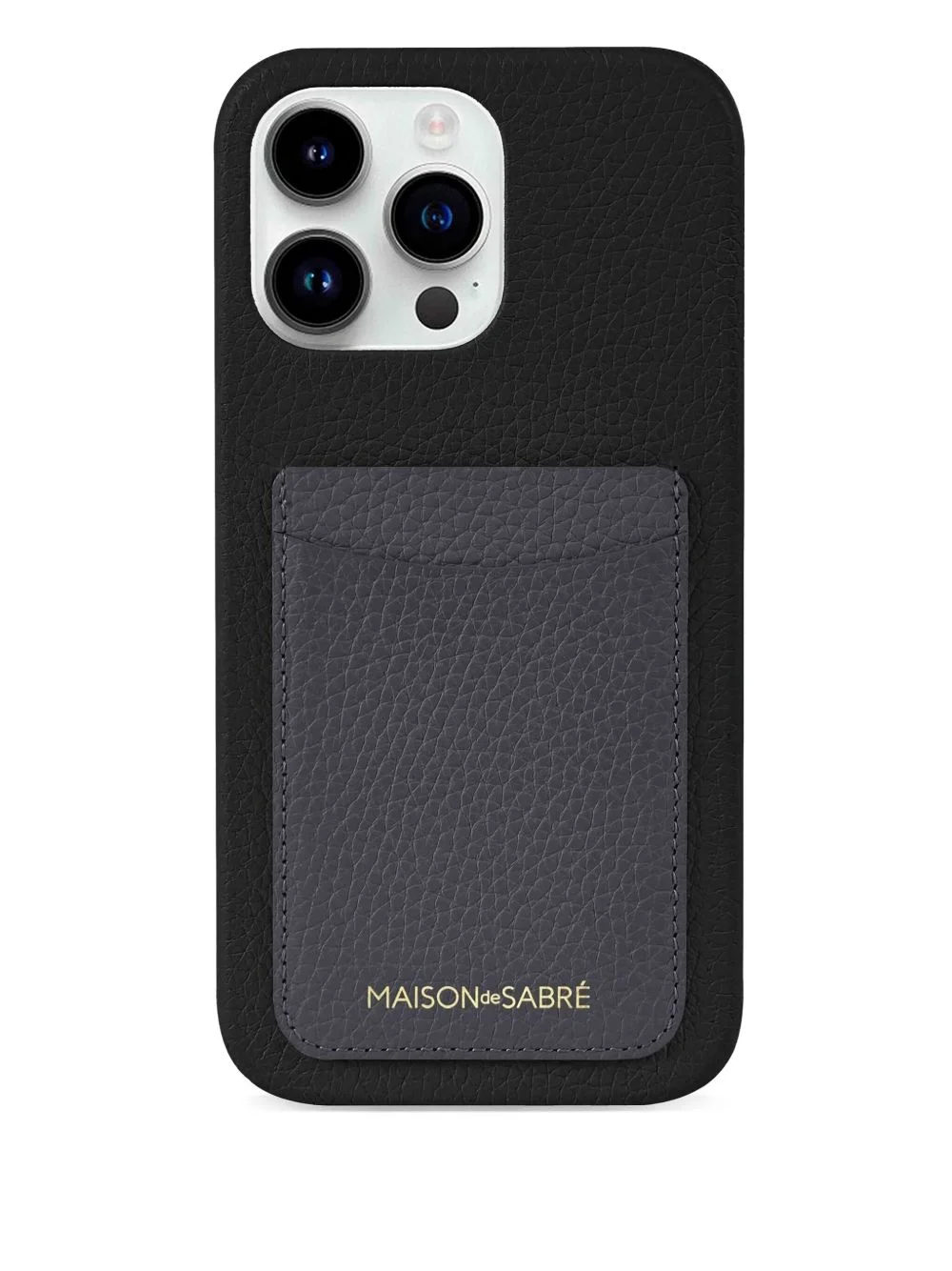iPhone 14 Pro Max card-slot phone case Highlights - Graphite - Two card slots - Raised screen edges - Durable stitching - Logo lettering Imported Composition Outer: Leather 100%