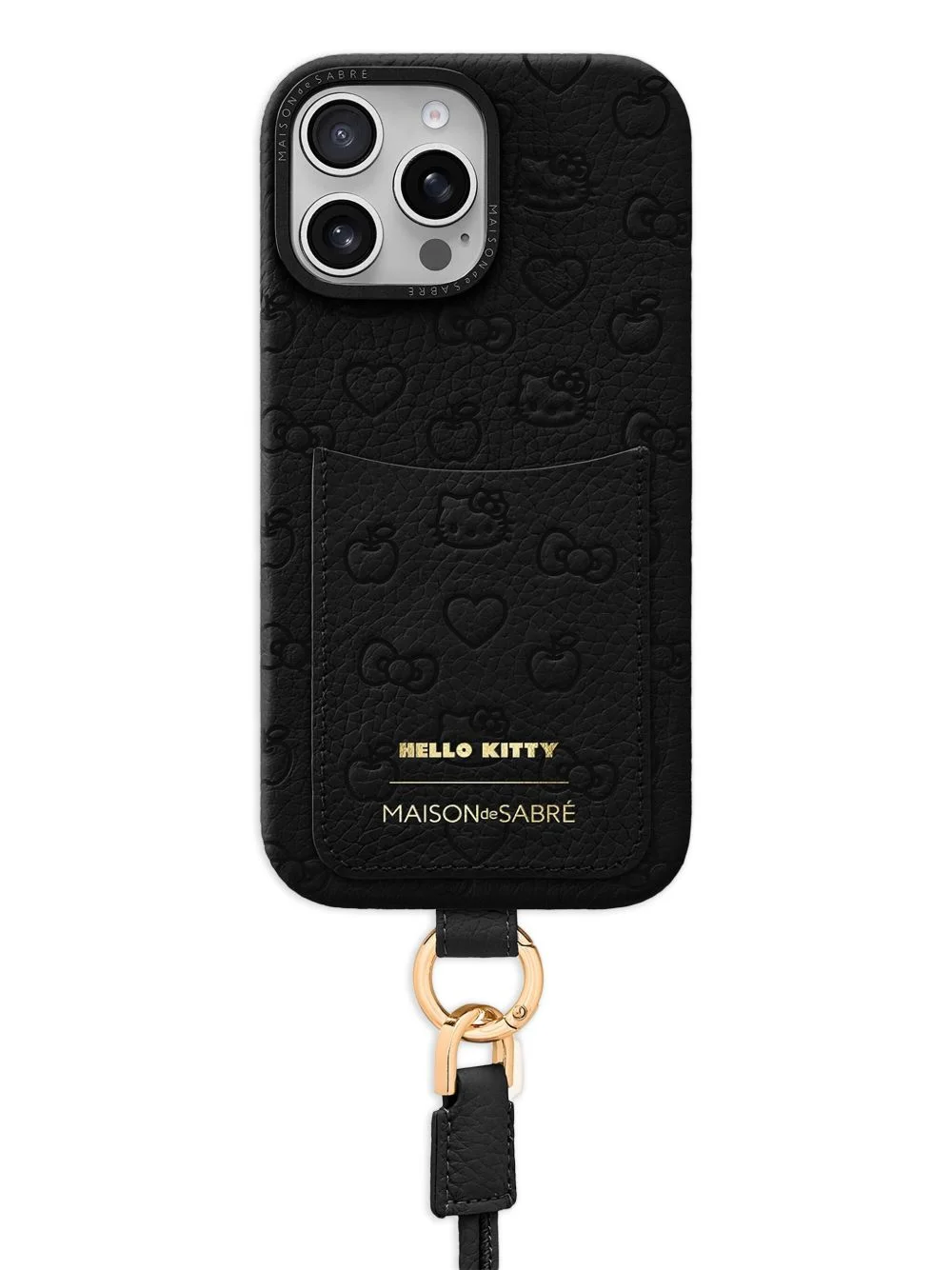 iPhone 16 Pro Max sling card-slot phone case Highlights - Black - Embossed design - Card slot - Gold-tone hardware Imported Composition Outer: Leather 100%