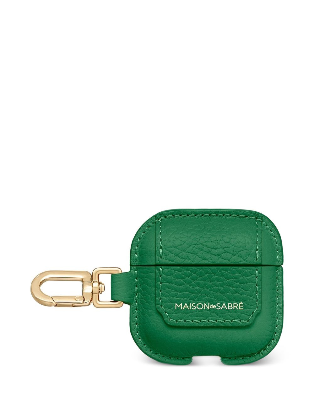 leather Airpods Pro 3 keyring case Highlights - Green - Grained leather - Gold-tone clasp - Charger cut-out Imported Composition Outer: Calf Leather 100% SIZE & FIT Measurement DEPTH 0.86 in(2.2 cm) HEIGHT 1.85 in(4.7 cm) WIDTH 2.44 in(6.2 cm)