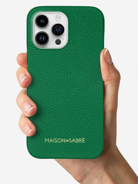 Leather iPhone 14 Pro case Highlights - Emerald green - Pebbled texture - Enhanced impact resistance - Camera protection - Leather exterior Imported Composition Leather 100%