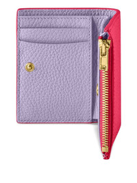 small leather bifold wallet Highlights - Fuchsia - Gold-tone hardware - Six card slots - Note compartment - Zipped coin pouch - Your purchase will arrive with a gift box. Imported Composition Outer: Grained Leather 100% SIZE & FIT Measurement LENGTH 4.21 in(10.7 cm) WIDTH 3.3 in(8.4 cm)