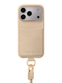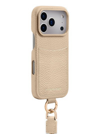 The Sling card-slot iPhone 17 pro case Highlights - Beige - lanyard - Rear card slot - Aluminium camera guard - Hand-sculptured curvature at button ports - Gold-tone hardware Imported Composition Outer: Grained Leather 100% Lining: Microfibre 100%, Polycarbonite 100%