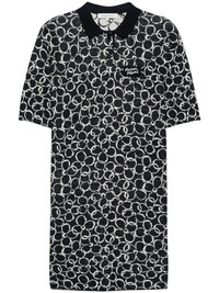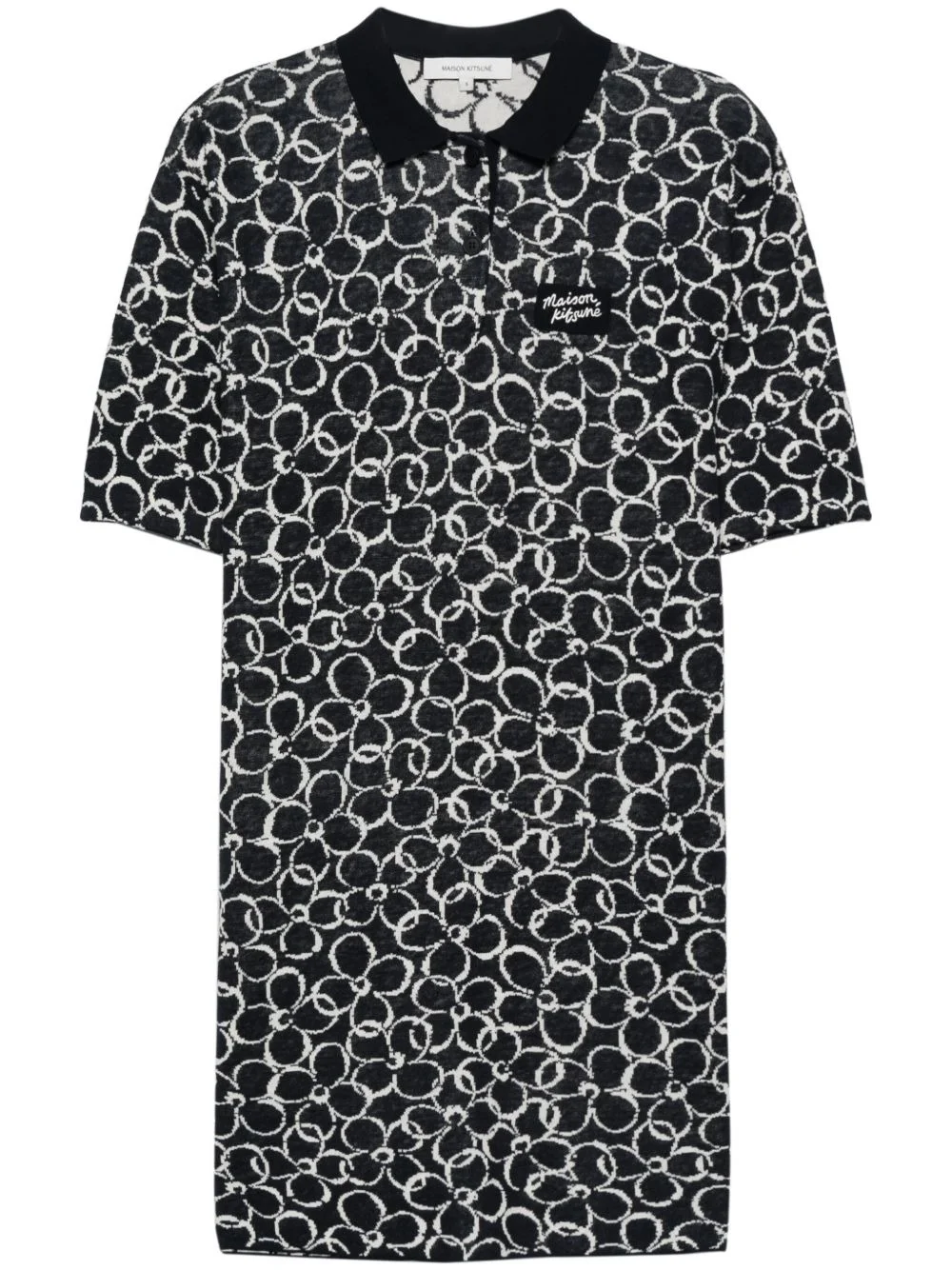 Abstract Daisy-jacquard dress Highlights - Navy blue/white - Cotton-linen blend - Knitted construction - Abstract daisy-pattern jacquard - Polo collar - Half-length sleeves - Straight hem - Thigh-length - Unlined - Short front button placket Imported Composition Cotton 65%, Organic Linen 34%, Lycra 1% Washing instructions Hand Wash