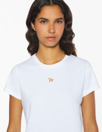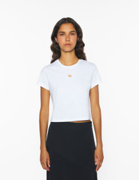 DETAILS Cotton jersey (180g) T-shirt. Cropped fit with Baby Fox embroidered patch. - T-shirt in cotton jersey (180g) - Organic cotton - Fitted & cropped fit - Short sleeves - Crew neck with rib finishing - Baby Fox embroidered patch on the chest PW00111KJ7026-P100 SIZE & CUT Cut: CROPPED Sizing: WOMEN The female model is 5.7 and is wearing size S MATERIAL 100% COTTON TRACEABILITY Made in Portugal