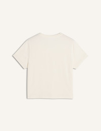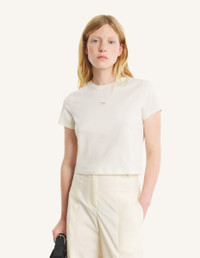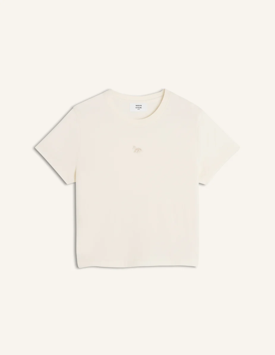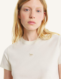 DETAILS Baby t-shirt in classic cotton jersey (180g). Cropped fit with Baby Fox embroidered patch on the chest. - T-shirt in classic cotton jersey (180g) - Cropped fit - Crew neck - Ribbing at the neckline - Tonal Baby Fox embroidered patch on the chest MW00105KJ7026-0063 SIZE & CUT Cut: CROPPED Sizing: WOMEN The female model is 5.8 tall and wears a size S MATERIAL 100% ORGANIC COTTON TRACEABILITY Made in Portugal