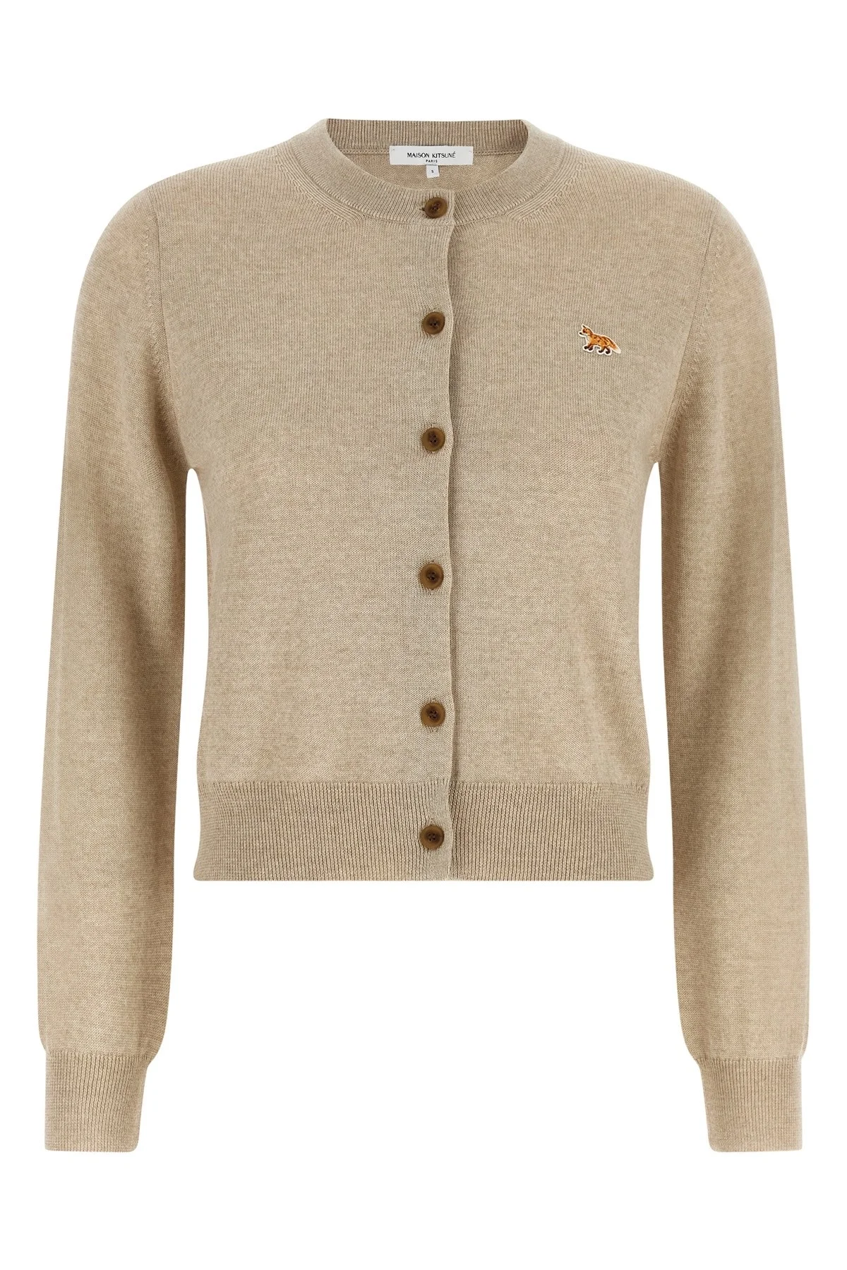 cod. PW00502KT1181H218 Extrafine wool cardigan, Baby Fox patch and front button closure, crew neck, long cuffed sleeves. Color: Beige Size & Fit: true to size fit Composition: 100% extrafine wool Made in: Portugal