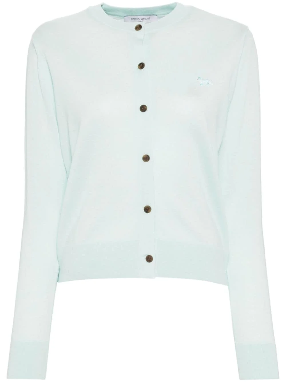 Baby Fox cardigan Highlights - Peppermint green - Wool - Fine knit - Embroidered baby fox patch at the chest - Front button fastening - Crew neck - Ribbed band collar - Ribbed cuffs and hem Imported Composition Wool 100% SIZE & FIT Model measurements Height 5 ft 10 in(1.77 m) Bust/Chest 31.49 in(80 cm) Hips 35.43 in(90 cm) Waist 25.19 in(64 cm) FittingInformation Designed for a slim fit that sits just away from the body offering a close yet comfortable fit The ribbed hem offers a close, comfortable fit Made with a lightweight knit, this piece offers some stretch This piece fits close in all sizes – take your usual size